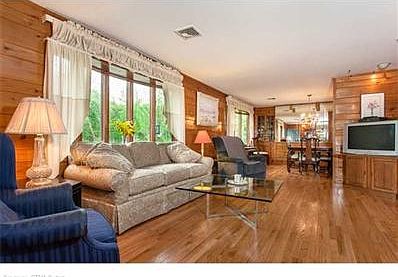 Charming cul de sac home w/front and rear living space. Front w/freshly painted 4BRs/2BAs, pine paneling,refinished hrdwd flrs,frpl,2 car. Rear space w/2BRs/1BA,lrge LR,high ceiling,office/study.Newer septic.2furnaces(1 new).Good for multi generation
