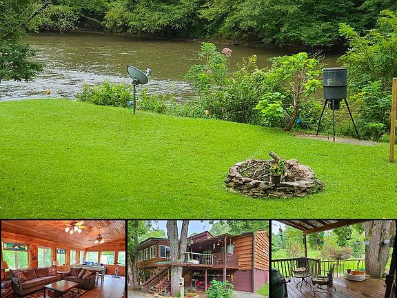FABULOUS RIVERFRONT HOME right on the Little Tennessee River. Fish, Kayak, Tube or just relax to the sights and sounds of the soothing river. This immaculate home offers one level living with easy access year-round. You will enjoy the beautiful covered front porch overlooking the river. Step inside and you will love the rustic feel of this 2 BR, 2 bath home, with wood walls & and vaulted wood-beamed ceilings and a huge living room/dining room with a wall of windows that offer up great views of the river. This home has lots of updates including, granite countertops in the kitchen, wood floors in the family room, and new vinyl plank floors in the living room, and bedrooms. New Vanity sink in the master bath, and new seamless gutters. Plus the HVAC is only a few years old. Has a wood burning stove too, for those cool evenings. It also boasts a workshop underneath and a large storage area, great for storing all of your water toys!. Has a nice flat back yard that would be great for a veggie garden. This house is ready to move in and would make a great vacation rental, to help offset your costs, or just keep it for yourself as a year-round home.