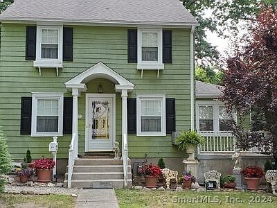 Here's your chance to own a charming colonial tucked away on a quiet street in Springdale just minutes to the Springdale Train Station...only an hour commute to Grand Central! The home offers a peaceful escape while still being close to downtown, Darien, and New Canaan. Step inside to a cozy living room featuring a classic fireplace with a detailed mantel. The kitchen boasts a breakfast bar and plenty of counter and storage space. The first floor offers a sunny den that could serve as a home office, along with a full bath. Outside, you'll find a spacious deck overlooking a beautifully landscaped backyard. With its own private road, parking is a breeze with a one-car garage and a full-sized basement. Upstairs, there's a primary bedroom, two additional bedrooms, and another full bath. Hardwood floors run throughout under the wall to wall carpets, adding to the charm. Plus, there's potential for expansion with a walk-up attic. First floor and second floor have built in air conditioners. Wall and ceilings are in excellent shape. Roof is newer and windows are vinyl double thermal pane replacement windows. Enjoy the unbeatable location just half a mile from the train station, with easy walking access to restaurants, cinemas, and all the conveniences of village life in Springdale. Sellers are moving soon so don't let the boxes through out detract from the vision of the charm and warmth of the home. Don't let this opportunity slip away!