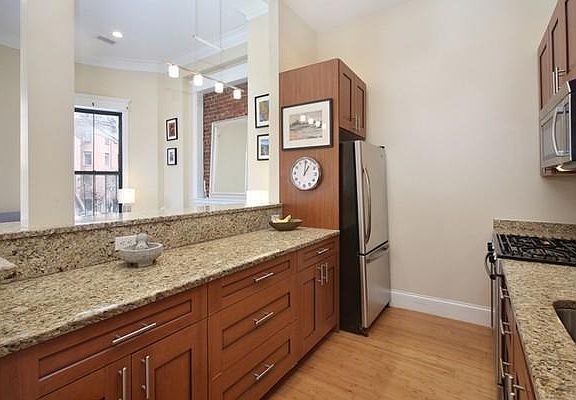 Sun filled parlor level two bedroom home with a beautiful views of the fountain on leafy Worcester Square. This meticulous home features an open style chef's kitchen with granite countertops, stainless appliances, and gas cooking. The bow front living area has 11 foot ceilings, hardwood floors, oversized windows, exposed brick and separate dining area. The two bedrooms are both great in size with ample closet space and hardwood floors-one with access to a private deck which is perfect for morning coffee or evening cocktails. Other features include in unit laundry, central air conditioning, additional in unit storage plus bike storage. This professionally managed and well maintained building is located steps to all the South End has to offer including: trendy restaurants, unique shopping, BU Medical,public transportation, neighborhood parks and much more.
