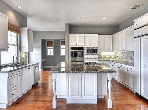 BEST PRICE VIEW HOME in Ladera Ranch with over $118,000 in upgrades and a motivated Seller! This charming home has captivating views of dramatic sunsets, city lights, and the hillsides of Ladera Ranch. It is located on a cul-de-sac in the sought after Oak Knoll Village. With its casual elegance and contemporary flair, it is a perfect space for living and entertaining. This turnkey home welcomes you in by a rounded, vaulted foyer with a beautiful chandelier and stunning mosaic floor. You are lead into a bright, open floor plan with endless wainscoting, custom crown molding/baseboards and hardwood floors. The separate living room and dining room space boasts arched entryways with an abundance of natural light. With views of lush greenery, the family room/great room has a built-in media cabinet and fireplace that is open to the gourmet kitchen with an oversized center island perfect for entertaining.The kitchen offers a generous amount of pristine white cabinetry, granite countertops, stainless steel appliances, a breakfast nook, large pantry and small separate area that could be used as a secondary prep, butler's pantry or homework space. There is a main floor bedroom with ensuite bath. The 2nd floor features 2 large bedrooms, a full hall bath, a office space, a media/bonus room that could be a 5th bedroom and a grand master suite and bath with panoramic views. The back yard has a patio, grass area and spa with a waterfall. There is a 3 car attached tandem garage with storage.