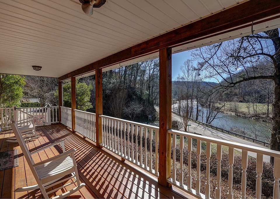 Riverfront, overlooking the Tuckasegee! 3 bedroom, 2.5 baths plus 2 large bonus rooms, cedar sided home features: granite counters, great chef's kitchen, hardwood/tile floors, gas log fireplace, large master suite opens to screened porch, plus open porch & patio w/sunsetter awning, 2 car oversized garage, concrete drive, beautiful mature landscaping.