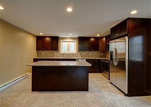 Beautiful quiet country setting in very desirable location for this newly renovated home. Gorgeous open custom kitchen with granite countertops on huge kitchen island with brand new stainless steel appliances, cabinets and porcelain tile. New roof, siding, deck and updated electric. Both bathrooms with granite countertops, new vanities, porcelain tile and toilets. All three bedrooms and den/office (a potential 4th bedroom) have been newly carpeted and painted. Sun drenched hardwood floors in dining room. Fireplaces in both the cellar and the living room. Cellar looks brand new with new paint and insulation and an 80 gallon hot water heater for plenty of hot water. Four acres of land, with huge front and back yard, comes with endless recreational possibilities. A great house in a great town. Won't last