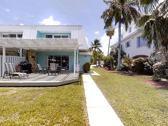 Charming and updated town-home style canal-front half duplex, first floor living area and half bath, leading out to an open air porch with deck. Second floor has two large bedrooms separated by a bathroom. The canal-side bedroom leads out the a private canal front balcony! 37.5 ft. concrete seawall with wooden step down dock. New Wood-look flooring up the stairs and in both bedrooms.