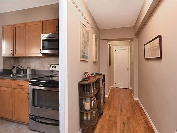 Bay Ridge .Upper floor Pre-War sunny 1 Bedroom co-op with western exposure and a beautiful partial view of the harbor. This impeccably remodeled one bedroom corner co-op features an Eat in Kitchen with an abundance of maple cabinets, stainless appliances, quartz countertops and a lovely stone backsplash. There is plenty of counter space. Additionally, there is an extra countertop which creates an open layout & flow to both the 19' entrance foyer and into the living room.