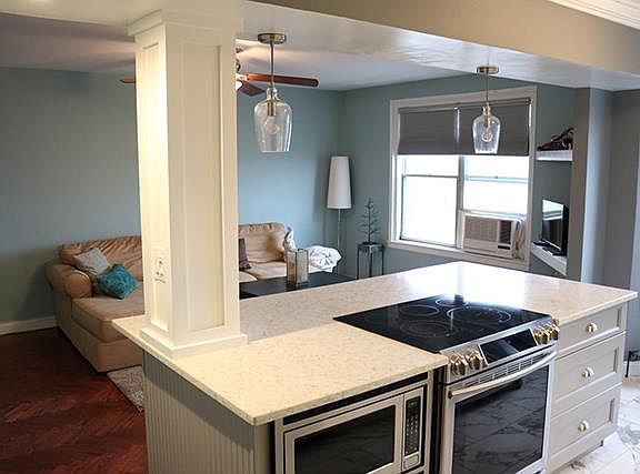 This PET FRIENDLY 1000 square foot apartment is offer at $2499 with all utilities, even ELECTRIC. It has 2 bedrooms and 1 fully renovated bathroom, along with an open floor plan. Parking is available for an extra fee negotiated with the owner. It features a fully renovated kitchen with an island as well as stainless steel appliances and quartz countertops. Located on the top floor, this apartment has unobstructed Verrazano and water views as well as 8 windows that provide large amounts of natural light. It has newly finished herringbone floors and 5 closets to give you plenty of storage. The complex, Flagg Court, is steeped in history with a centralized location just blocks from the express bus, subway and ferry. Board approval needed.