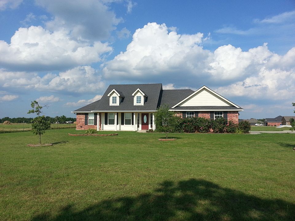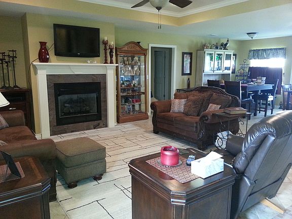 Nice 3/2/2 brick home on 1 acre. Large open living/kitchen/dining room will tile, island, granite and SS appliances. Split BR plan with carpeted BRs. Large Master Suite w/ huge walk-in closet, corner jetted tub, separate shower and double sinks.