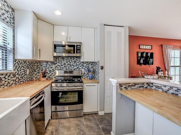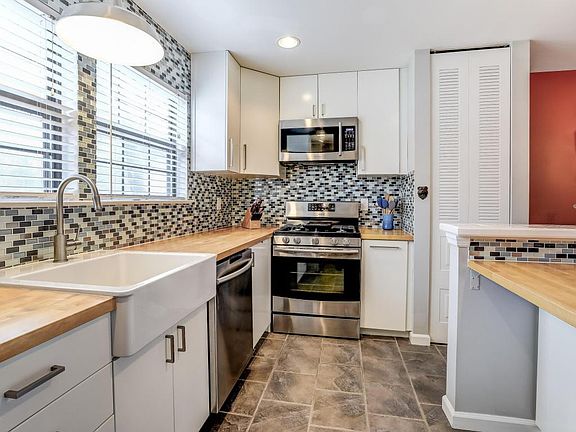 Completely renovated end unit Evergreen Model hits the market! The entire unit has been renovated from top to bottom within the past few years. Walking into the foyer the staircase is to your right and the kitchen to the left. The ceramic tile in the foyer continues down the hall and into the kitchen. The white cabinets are perfectly complimented with wooden countertops, a white farm sink, and a full Samsung stainless steel appliance package finished with a glass tiled backsplash that goes up the wall. The peninsula in between the kitchen and dining rooms provides extra counter space and enhances the open floor plan. The dining room is open to the spacious living room that features a custom stone wall and a sliding glass door that leads out to the private backyard with a patio..