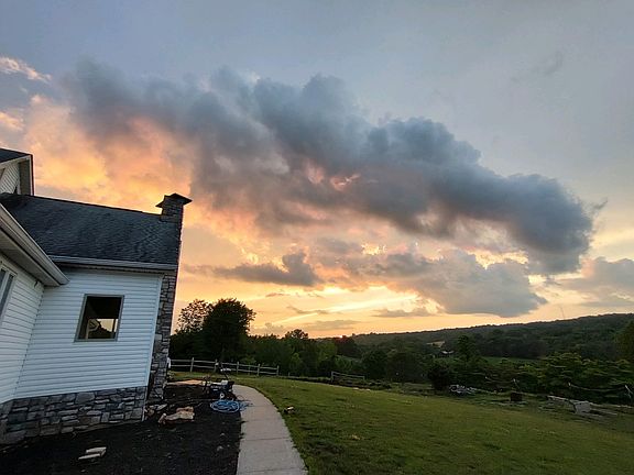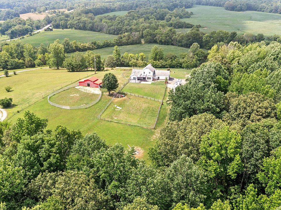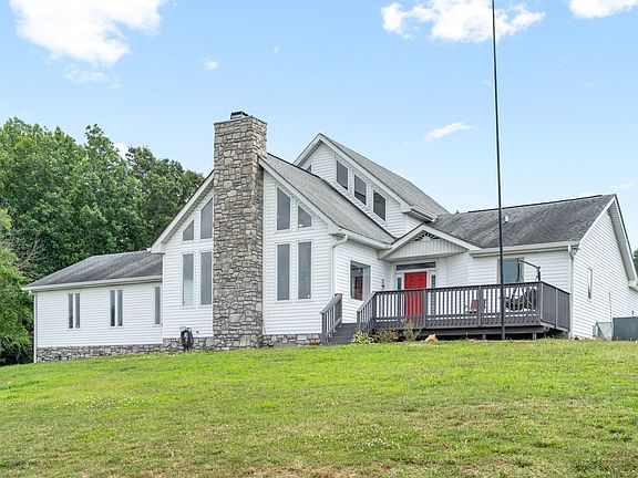 Motivated sellers, huge price drop! Beautiful country estate sitting on 5 acres with spectacular views & no city taxes; perfect location! Open kitchen w/ sparkling granite & backsplash, large pantry, wrap around breakfast bar & a dining area large enough to host every holiday. Soaring ceilings in the living room are matched with natural light pouring in through the many walls of windows. Main level primary bedroom w/ 10x11 office/sitting room (fiber internet). New flooring on the main level, fresh paint, new fp logs, new 2nd floor HVAC unit w/ soft water system. Barn has LED lighting, electrical (30 amp), fencing; small pond & 4 water spigots on property. (3) Rv parking w/ 50 amp service, water/septic & clean outs. 38 ft trailer w/ 12x32 deck & 12x12 enclosed porch w/ laundry remains.