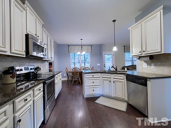 Beautiful home in a quiet community. Enjoy the Pond or relax on the screen porch and enjoy the private wooded backyard. This home is over 3,000 sq ft on a large .75 acre lot. Conveniently located to 40/42 shopping, restaurants and an easy commute to Raleigh or Goldsboro. Four bedrooms, 2.5 baths, two large bonus rooms, a separate dining room, 1st floor Master bedroom, granite counter tops and SS appliances in the kitchen.