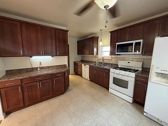Welcome to this beautifully updated 3-bedroom, 1.5-bathroom home, filled with modern upgrades and thoughtful touches throughout! The kitchen boasts stylish soft-close cabinets and newer appliances, including a 5-burner gas stove, built-in microwave, dishwasher, and a large side-by-side refrigerator. A brand new hot water heater and newer furnace add to the home's efficiency and comfort. On the first floor, you'll find the convenience of a laundry area and a half bath, while upstairs, three spacious bedrooms and a Full Bath. Step outside to enjoy the large concrete patio, perfect for outdoor gatherings, with a shed for extra storage. The backyard is surrounded by a durable concrete block wall, offering privacy and low-maintenance care.