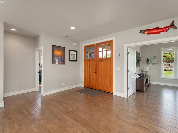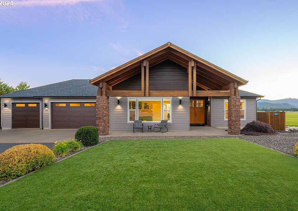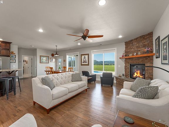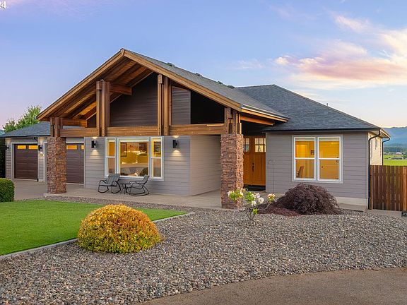 Stunning home in a premier Garden Valley gated community just moments to town! Enjoy sprawling views of the vineyards, mountains, and Umpqua Valley! This single level home features a welcoming open floor plan with high ceilings, engineered hardwood flooring throughout, stacked stone hearth, gas fireplace, large kitchen with stainless steel appliances, gas cooktop, granite countertops, pantry, customer tile showers, and beautiful primary suite with walk-in closet. Unwind in the media room with surround sound! The detached shop includes separate guest quarters with a full bathroom and a sliding door to a private covered patio with amazing views! Entertain guests or just relax under the covered back patio overlooking the refreshing inground, gas heated pool and fabulous sunsets! This immaculate property that is meticulously maintained, shows pride of ownership and features very low maintenance landscaping. Call for your private tour today!