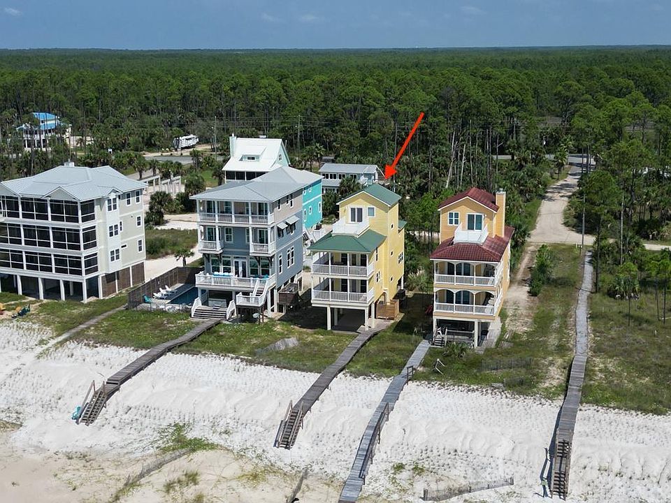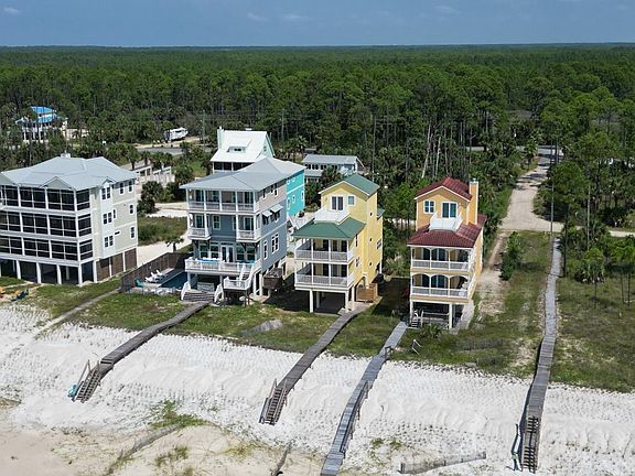 Enjoy Incredible views from this secluded GULF FRONT home on almost 1/2 acre. This 4 BR, 4 BA home has approximately 2,200 sq. ft. heated and cooled and over 2,000 sq. ft. of balcony space. The home has a private drive with gate for privacy and security. Inside the home you will find hardwood floors, granite counter tops, stainless appliances, a gas fireplace, gas stove, a gas tankless water heater, hot and cold water outdoor shower and a 3 stop elevator. The Master Bedroom encompasses the entire third floor complete with a private workspace and a magnificent private balcony. The "Eagles Nest" provides for the ultimate private dining and romantic entertainment space. This stunning home is conveniently located between Port St. Joe and Apalachicola and is only 15 minutes to either location to enjoy shopping and dining at one of the many locally owned boutiques and restaurants. Don't miss this opportunity to own your own private beach getaway !!