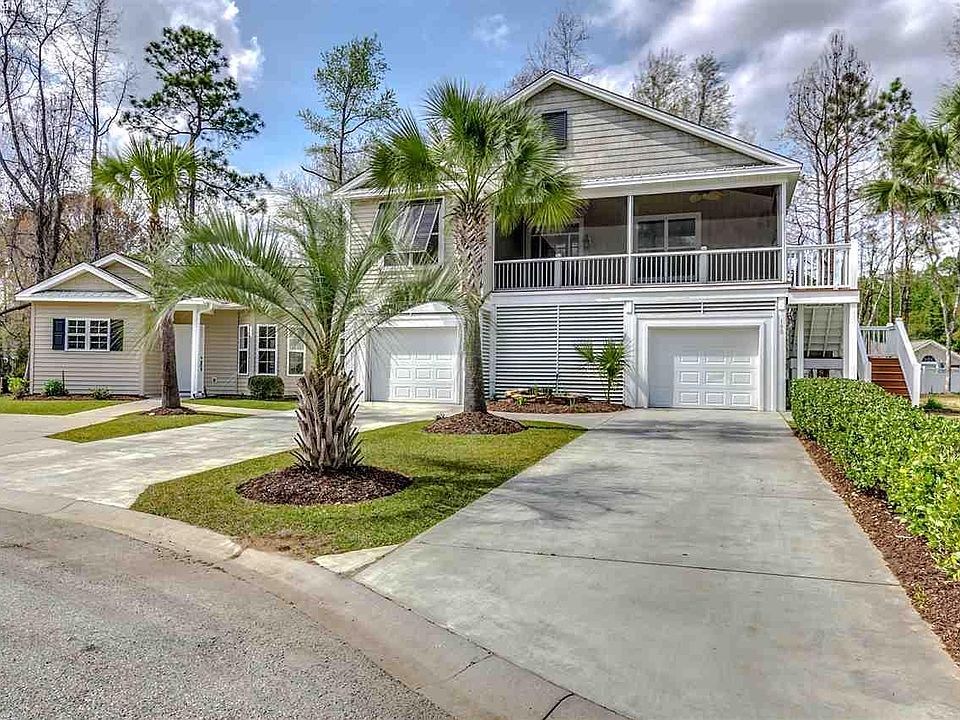 ;This raised beach home is 2,476 heated square feet with 4 bedrooms, and 4 baths. ; The 2 car garage is tucked under the home with a spacious storage area in the middle. ; Perfect for a primary residence or second home, it is located just minutes from the beach, shopping, nightlife amp; golf. ; Each bedroom is secluded for privacy with itrsquo;s own private bath amp; large closets. ; It is nestled in a cul de sac in an existing family neighborhood in the award winning Forestbrook School District. ; The open floor plan makes entertaining family and friends easy. ; ; The oversized eat in kitchen has a pass through to the equally oversized great room and is open to the dining room. The kitchen comes complete with solid surface counters, a range, dishwasher, food disposal, microwave, breakfast bar and pantry. ; The home is filled with large windows everywhere to take advantage of the views and provide plenty of natural light. ; A vaulted ceiling gives the great room an open amp; airy feel and a fireplace (with TV cut out) keeps it cozy on those cool evenings. The master suite is on the first floor amp; features a whirlpool tub, oversized linen closet, double sinks amp; vanity. ; The corner custom tiled shower area features a body spray amp; hand held sprayer. ; Floors are accented with Heart Pine hardwood in the living room, dining room amp; kitchen and tile in the foyer. No feature has been left out, the separate oversized laundry room provides more storage and a sink, a sprinkler system ; custom landscaping including accent lights on the palm trees, a front porch with knotty pine ceiling amp; Caribbean style fans, rear porch, ; garage door openers and an outside attached storage area and still so much more! ; Every attempt has been made to give this home a ldquo;Cottage Beachrdquo; feeling. ; This home truly has it all centrally located between Rts 501 amp; 544 the neighborhood is just minutes to the beach and close to shopping but nestled in a quiet country setting.