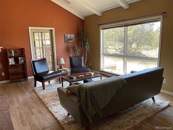 Come experience the amazing views in this spacious home in Crestone's Chalet 1. In a dream location, where you can head to town in 15 minutes on lovely nature trails, or head just up the hill, to the South Crestone Creek Trail. This trail continues all the way up the mountain to Willow Lake and the 14,000 foot Challenger Point. South Crestone Park, the fire station, and EMS are just two blocks away. Despite being so close to everything, the house is nestled in a mostly empty culdesac with no other residents. It is buffered from any potential neighbors by a full acre of land, and backs to a greenbelt. The home has everything you'd want in any season. Featuring a beautiful stone fireplace and a large south-facing window in the living room that floods the room with warming sun in the cold winter months. And for the summer months, an expansive 330 square foot covered screen porch on the east side that faces nothing but nature, keeps the mosquitos at bay. Also, an additional 300 sq/ft private patio, and an elevated deck on the west and north, with some of the most spectacular sunset views in all of the Baca. With two bedrooms and two bathrooms on the main level, and an additional 1334 sq/ft of partially finished space in the full height, walk-out basement, this house includes the potential for expansion in a variety of ways. With 2,668 sq ft under roof, this is a great home or investment opportunity with possibility of an in-law suite, more bedrooms, a complete separate apartment, or a garage/shop and ample storage. Basement plumbing and elec hook ups existing. Both levels have their own separate entrances. The house is currently set up as a very highly rated Air BnB as well, and all the furniture and supplies are negotiable if one was looking for a turnkey investment. Newly painted exterior, new insulation in attic, and new tile in the living room and master bathroom. Seller is a licensed Realtor in Colorado.