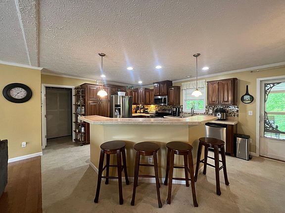 TWO Boat slips + Lake home + Garage + Extra lot equipped for RV + carport + lofted workshop + screened pavilion + the list goes on! 2009 Norris 32x72 Modular home has been converted to real estate w/ permanent block foundation. Custom ordered w/ numerous upgrades: Dry wall throughout, 8 ft ceilings, crown molding, R30 roof insulation, R11 wall insulation, R22 floor insulation, thermopane windows w/ top lite features in the front rooms, built-in shelving, stone fireplace in living room (originally wood burning has been converted to propane.) The kitchen features an abundance of cabinetry w/ double oven, 4-door fridge, dishwasher & built-in microwave. The master bedroom has a jacuzzi tub, separate walk-in shower, walk in closet w/ built in dresser & window. Separate office off of the master. Laundry room w/ utility sink & pantry. Covered back deck 12x40. Extra tall 24x40 GARAGE w/ heater & AC with pool table and custom built bar for great entertainment area. Attached 24x38 wood carport. 20x20 covered screen pavilion overlooking garden area. 10x20 lofted workshop with attached 12x16 deck. Chicken house/dog run. Union Ridge community dock. FULLY FURNISHED & has Back up generator!!
