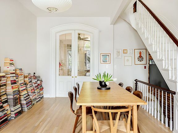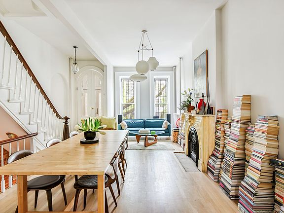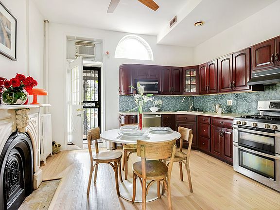 190 Clermont is a one- or two-family brownstone located two blocks east of Fort Greene Park. The home is on the National Registry of Historic Places, which means you will have the character you want from a Brooklyn brownstone, including multiple marble fireplaces, 10' 6" ceilings, and updated with modern amenities and decor. When you enter the townhouse you will be in the expansive living room/ dining area. The living room has beautiful Italianate marble fireplace. From the dining area you enter into the eat-in Chef's Kitchen with wrap-around counters, an island and another Italianate marble fireplace. From the kitchen you can access the outdoor covered deck and backyard overlooking a garden. Upstairs there are two generous bedrooms, ample closets, and a full bathroom. The third level has two additional bedrooms and a full bathroom. The garden level apartment is a grand studio with exposed brick walls, a fireplace, full kitchen, private bath, dining area, additional storage, and private backyard access. Washer/Dryer.