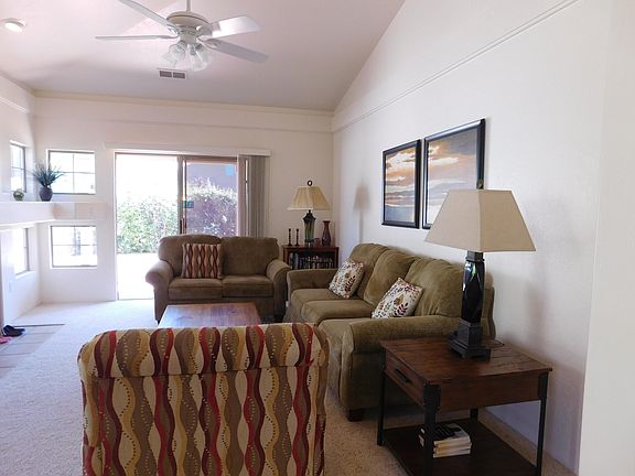 Wonderfully maintained property. Clean as a whistle, move in condition. Save money with this purchase price. Now you can do some upgrades if wanted. End unit with flat backyard finished with pavers. Drip system installed ready for more plants. Back fence, which is covered with lush green plants backs to the arroyo for added privacy. Master bathroom was upgraded during construction to include sink in the same room as toilet and tub. Furniture and some accessories available with separate contract outside of escrow. Call LA for details.