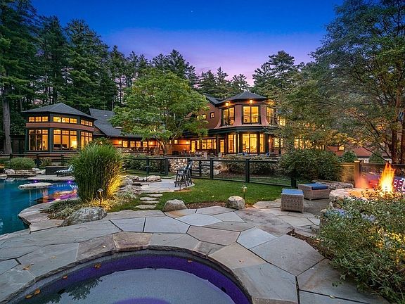 Spectacular 7.33-acre equestrian property abutting conservation trails offers the ultimate 13,000 sq.ft. family estate with amenities, park-like grounds and tranquility of a luxury resort. Renovated in unparalleled style for comfortable modern living, the flowing floor plan seamlessly connects the main house, 2-story guest wing and 6-stall barn with loft/lounge/kitchen. Gorgeous reclaimed wood floors, shiplap, expansive glass with stunning views and exterior access to sweeping lawn, patios, pool, sports court, playground, riding ring & paddocks. Soaring skylight foyer with 2-sided FP, stunning vaulted-beam great room, formal LR and DR, dazzling chef's kitchen, octagonal glass breakfast room & 2-BR wing with kitchen, living room, screened porch. Bay window/fireplace master & spa bath, 2 addtl BRs on 2nd floor. Lower level has dramatic glass office with patio access, gym, studio, craft room. Magnificent outdoor kitchen, waterfall pool, hot tub, fire pit. Private oasis, minutes to town.
