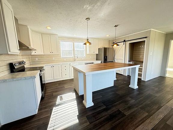 Immaculate farmhouse style, ranch home on 3/4 level acre with wooded privacy at rear. New carpet, fresh paint, new appliances in this open floor plan split bedroom design home with large open living / dining room combo and eat in kitchen with new appliances, European style extractor hood, farmhouse style sink, pantry with barn door and built in coffee bar. Large master bedroom with ensuite bathroom with double vanities, walk in shower, built in shelving and hanging area, walk in closet, 2 additional guest bedrooms with guest bathroom with double vanities. Beautiful country views across open fields to the front. Home is eligible for 100% financing with USDA or VA loan, also possible seller financing available.