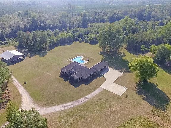 This property comes with two houses.. The main house features 3200 sq ft with 4 bedrooms 4.5 baths. All bedrooms have walk in closets, carpet and crown molding. The large kitchen boast granite countertops, all wood cabinetry, antique chandelier, custom island, gas cook top, double oven, custom vent hood, and a farmhouse sink. In the gathering room you will find a gas fireplace with rock surround with a reclaimed beam mantle, reclaimed wood floors, beams and trim. The large playroom/office/media room off the kitchen features a full bath with custom tile and granite countertops. The laundry room features a butlers pantry with to the ceiling solid wood cabinets, double sink, room for a full size fridge/freezer. In the formal living area you will find a custom picture rail trim, large windows, custom ceiling molding, a large custom antler chandelier, and a beautiful mahogany front door. Master bathroom holds a soaking tub ,walk in shower with dual shower heads, double sinks, and a separate water closet. The master closet has been reinforced to use as an interior room for bad weather. Outside you will find a 2 car carport, large storage room, custom lazy L salt water pool with new liner, new salt cell, new Polaris and new pump, large custom tree house, an area for basketball court, lots of parking space, and a Generac generator large enough to run all systems in the event of a power outage. Also outside on the property you will find a 50x60 pole barn with 900 sq ft living area that features a great room, full size kitchen, full size bath, stained concrete floors, gas fireplace with rock surround, large covered area with lots of storage, exterior RV plug and so much more. Currently used as a home business. But that's not all you will also find a 40x72 metal warehouse with insulation, concrete slab, and a large roll up door. All of this plus more on +/- 30 acres. This property has so much to offer.