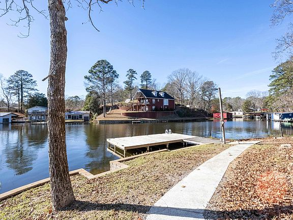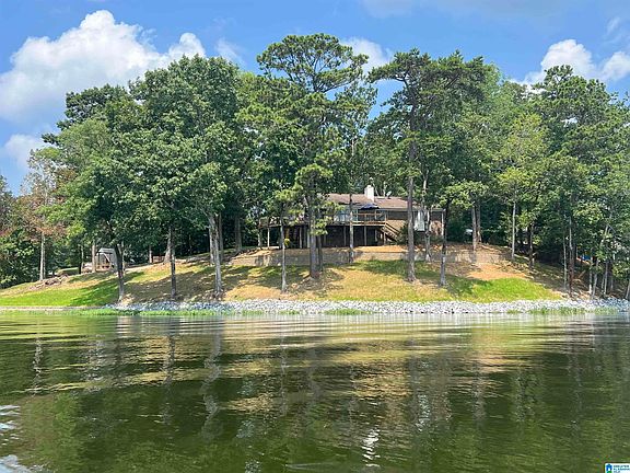 Lay Lake-Waterfront! Do not miss out on this exceptional 3 Bedroom 4 side Brick Lake Retreat -unique as it is on a Point Lot with over 600' of shoreline. Main level living with recent updates includes; new flooring, new countertops, new retaining wall, new Geo-stone Seawall, new Dock, new paint & more. Open plan concept with Great room, Dining and Kitchen creating ideal space for large family/friend gatherings. Great room has stone wood burning fireplace, gas starter & gas logs. Huge Master suite features double vanities in Master Bath, 2 Large Guests, 2nd Bath with Makeup Vanity, tons of storage, Generator, ice maker and much more. Additional storage with unfinished room in Basement & in 2 car attached main level garage. Limitless opportunities to gather and relax with expansive open deck, covered concrete patio, brick BBQ pit, additional decked area, concrete walk way to water and Storage building perfect for watertoys/lawn items. Seller has rental history- 5 star booking reviews.