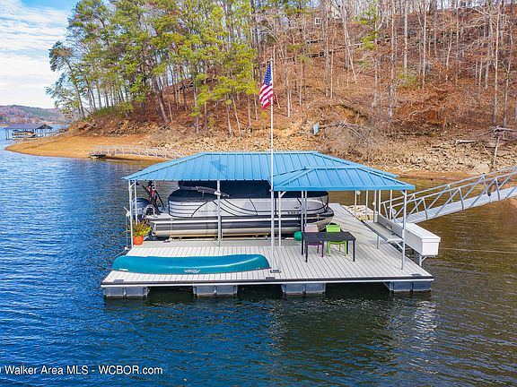 LICK BRANCH-Immaculate 5BR/4BA on the Cullman side of Smith Lake near Big Bridge. Open floor plan with an amazing kitchen with granite island. Living area with fireplace and beautiful sun room. Plantation shutters throughout most of the house. Large covered deck off the living area with beautiful views of the lake. Lower outdoor room with outdoor fireplace... Additional info on next page.....