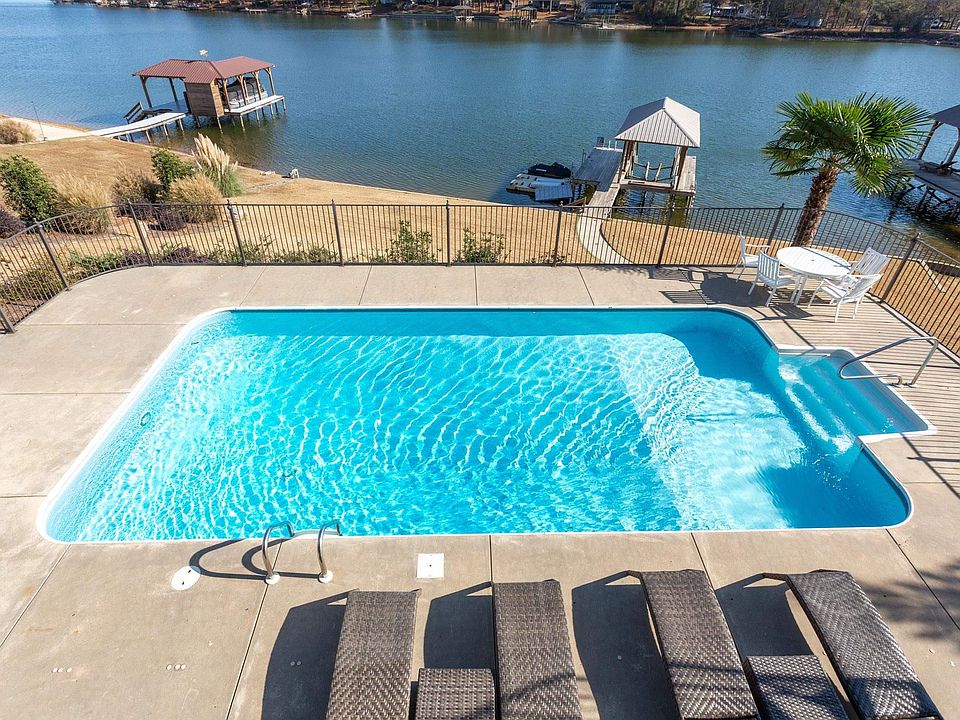 EXQUISITE 5 BEDROOM, 4.5 BATH LAKEFRONT RETREAT! This stunning home combines timeless elegance with lake living at its finest. The inviting living room features a gas fireplace, coffered ceilings, and custom built-ins. The serene primary suite offers a seating area, private balcony with lake views, spacious walk-in closet, and spa-inspired bath with freestanding tub. The gourmet kitchen boasts granite countertops, breakfast bar, new ice maker and wine cooler, and premium stainless appliances. Main level also includes a keeping room, laundry, half bath, and two guest bedrooms with full bath. Upstairs hosts a 2nd master suite, bonus room, and space for an additional bed and bath. The remodeled basement is perfect for entertaining with a custom kitchen, island, pantry, bedroom, and family room. Enjoy year-round fun with a heated saltwater pool, upgraded dock with boat and jet ski lifts, and beautifully refreshed landscaping. Luxury lake living at its best!