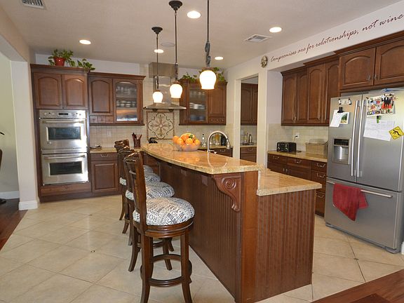 Gorgeous home with updated throughout! Formal living room features vaulted ceilings & fireplace. Formal dining room has a custom, expansive wine refrigerator, Gourmet, eat-in kitchen has granite counters, custom tile back splash, double ovens, built-in gas cook-top, stainless steel appliances. large pantry and breakfast bar that opens to family room with fireplace and built-ins. One bedroom, plus bonus room and one full bath downstairs. Master bedroom suite offers two walk-in closets and spa-like bathroom with a Jacuzzi tub, separate glass shower and tile floor with custom inlay. Additional features include: hardwood floors, crown molding, 3 zone a/c & heat, upstairs laundry room with sink, dual pane windows, and more. Backyard features a covered patio, pool and spa. Top rated schools. Close to creek and trails, restaurants, shopping, movie theater and more!