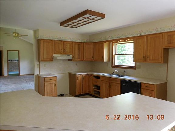 Home being sold "with repairs." Beautiful Leighton Ranch boosting over 5 acres of private property located on a no outlet street for added privacy. This home is first floor living at its finest featuring a 3 bedroom layout with 2 full bathrooms. Combine these with a living room that has sliding door that open up to a deck to enjoy the wooded lot and spacious backyard and you have a must see home.