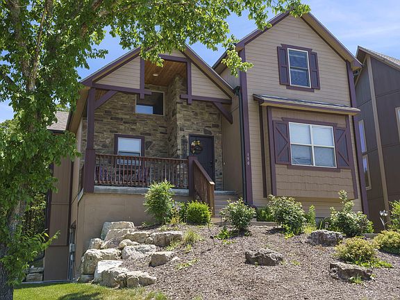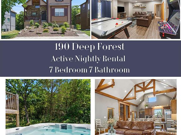 Amazing Investment Opportunity!!! Turn-key nightly vacation rental with amazing amenities: Clubhouse, two pools including zero entry pool, splash pad, and playground, walking distance to Table Rock Lake, Boat Storage while being just a mile from a public Boat launch. Minutes from Top of the Rock and Big Cedar as well as downtown Branson. Open floor plan with cathedral ceilings with custom beams, wood flooring, stone fireplace, and 2 living rooms. Relaxing hot tub on the back patio that backs up to trees for relaxing privacy. Enjoy the indoors with an air hockey table and game room in the basement!
