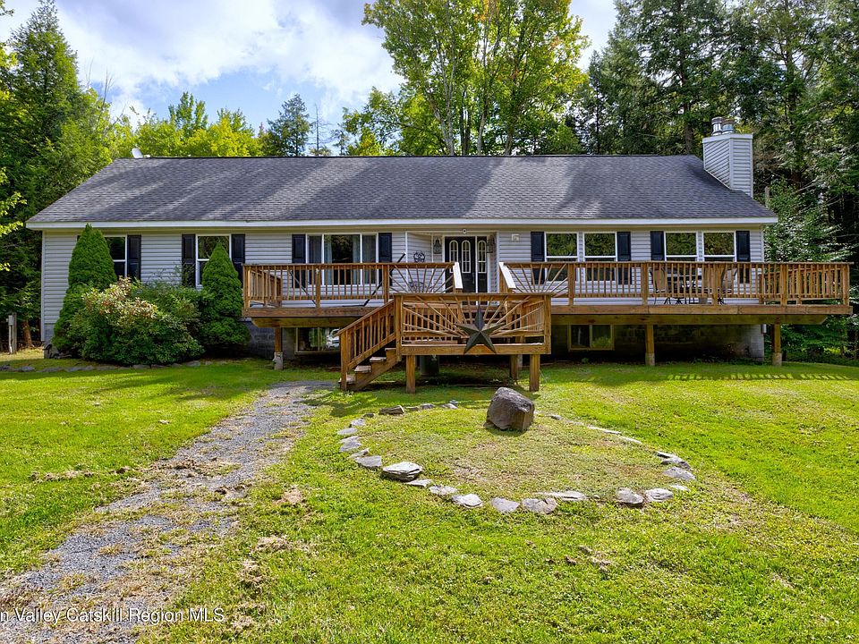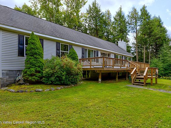 Discover the perfect blend of comfort, size, and serenity in this lovely 5 bed/3 bath, Cape Cod style home set on 5+ acres just minutes from Windham. You'll love entertaining family and friends in the large, open-concept kitchen with dining area that flows naturally into a family room complete with magnificent stone fireplace. After a fun-filled day of outside adventures, unwind in your main floor master w/ensuite that includes a relaxing soaking tub. There are two more bedrooms and full bath on the main floor with an additional two bedrooms and half-bath on the second floor. As if that's not enough room, there's a full, dry, walkout basement just waiting for you to make it your dream space. Exercise room? Media room? In-law space? The possibilities are endless. The outdoor area is equally as spacious. With over 5 acres there is plenty of room to plant the garden you've always wanted, ride your atv, host gatherings, or just relax in your tranquil surroundings. You're just minutes from Ashland Town Park, the Windham Path, breweries, wineries, farm-to-table dining, art venues, Catskill state parks, and skiing. This property offers a serene retreat with endless possibilities for entertainment all just 2.5 from NYC.