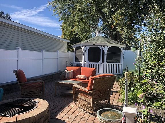 Spacious corner lot in sought after neighborhood. Brick exterior. One of a kind! This property boasts a fenced in manicured yard, Trek gazebo with electricity, inviting large stone patio for entertainment, gated driveway, one car garage, and car port. Inside you will find sun room and a large breezeway leading to a sweet eat-in kitchen with a window overlooking the back yard, hallway to updated full bath, 3 bedrooms, great room with bay window and skylight, and hardwood floors throughout. Downstairs is a partially finished basement with den and workout room, plus storage, and laundry. Wonderful location! Easy access to major routes and all area amenities. Central AC, new hot water heater, updated windows, and exterior surround motion sensor lighting. This is a maintenance free home! Well cared for, one family has filled it with love! Don't miss it!