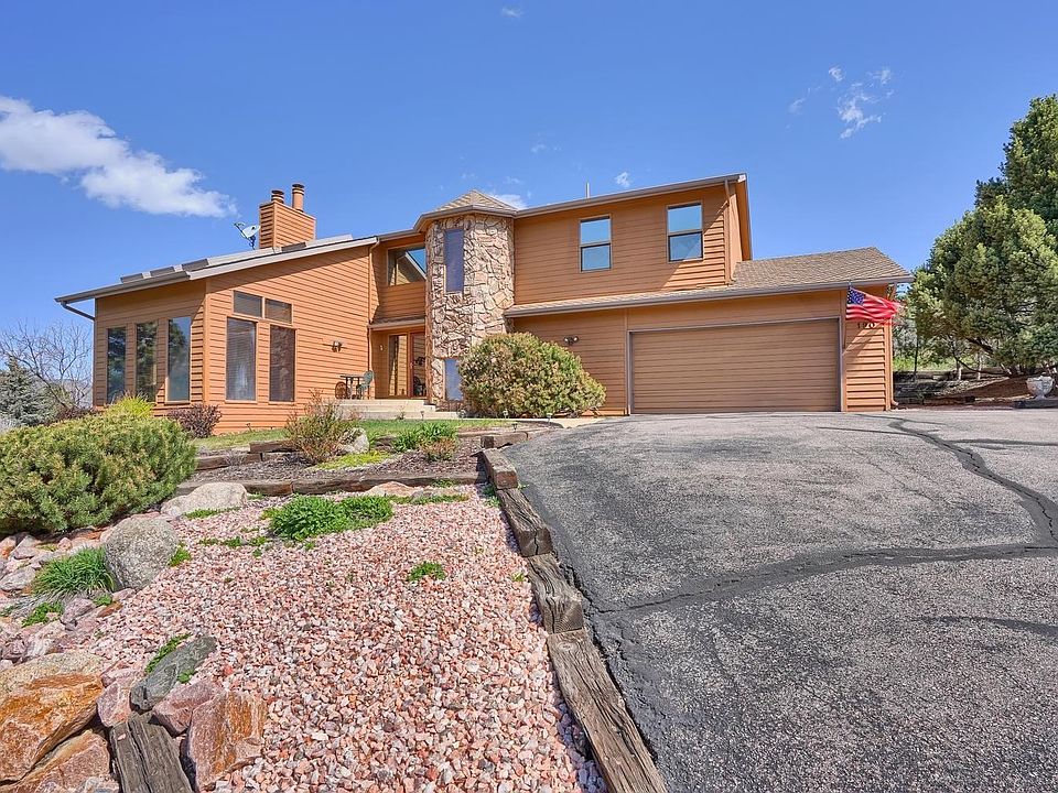 Lightly used home in excellent condition on 0.5 acre lot with Pikes Peak views. Owners spend at least 50% of the year in Florida. When you walk through the front door, you will immediately notice the care this home has been given, On the main level, you will find the living room with fireplace, opening to the dining room, a sun/music room, and kitchen with breakfast bar and walk-out to the large 22x19 deck. The very private deck and rear yard are shielded from neighbors by Gambol oaks. And hummingbirds love the trees! Great for breakfast in the morning or spending quiet evenings. Also on this level are the laundry and powder room. The upper level includes a loft area - good for reading or watching the Broncos. The large 10x13 deck off the loft has views of Pikes Peak, Cheyenne Mountain and Mt. Hermann.