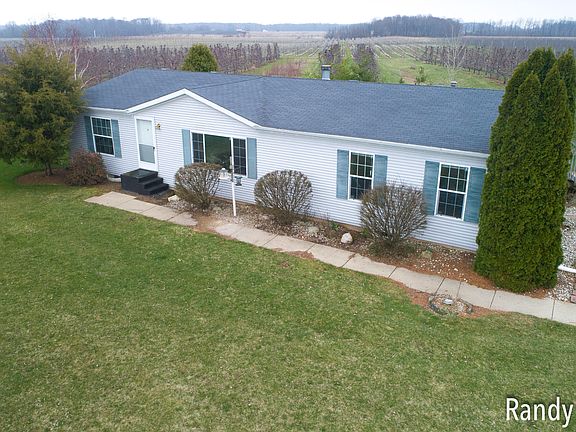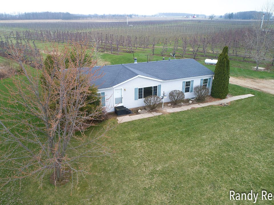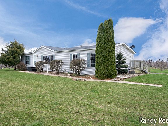 Sitting behind the Spruces in an Apple Orchard on a little over 4 acres you will find this 3 bedroom 2 bath walkout Ranch a little off Fruitridge in Apple Country!It has a stone fireplace, a big master ensuite, an extremely nice kitchen and sliders from the dining area onto a backyard deck. Pole barns are fine, a big garage could easily be attached and there are no close neighbors! This home is in the Blue Ribbon Coopersville school district and you could sell your spare apples to deer hunters each Fall! Come take a look!