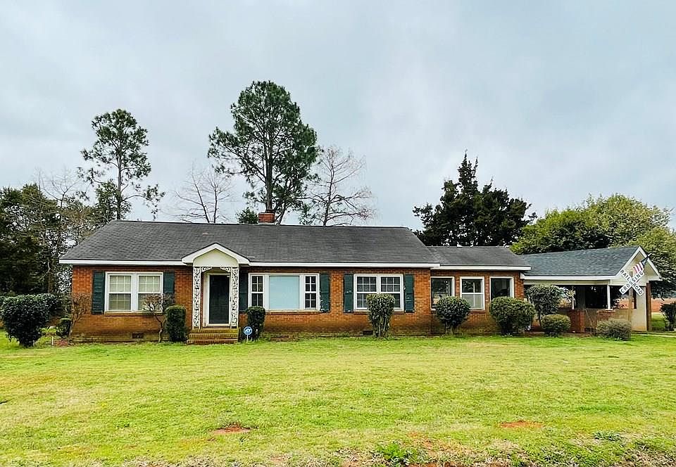 4 ACRES. This property offers a brick home with 2 large bedrooms 1large bathroom with a separate shower and a separate tub, hardwood flooring in some rooms, possible 3 rd bedroom or kids playroom, a laundry room with an exterior door, a sunroom, and a carport. This property also offers a second dwelling that could be an inlaws quarters or separate rental unit this structure has been rented out as office space in the past. There is a detached metal garage at the second dwelling. There is also an old barn that some renovation has been started but not completed. With some TLC a great property.