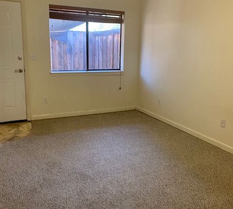 Newer apartment built in 2009, has nice full kitchen and super nice large bedroom, office area and has extra walk-in closet. This extra large one bedroom unit has a fenced front yard great for a dog and a small fenced backyard! Kitchen and living room combo. Small apartment complex only 11 one bedroom units. We pay at least $100 for each unit/apt's water/sewer bill to the City. The tenant only pays PGE and the unit is an energy efficient unit, with central heating and air conditioning. FULL FIRE SPRINKLER SYSTEM, METAL ROOF, STUCCO BUILDING, this building could not burn down if it wanted to. This garden style small complex has very nice neighbors and laundry room on site. Has tub/shower combo. NO SMOKING ANYTHING INSIDE, can smoke in yard as long as it doesn't upset the neighbors. Walking distance to Shopping, Mc Donald's or Starbucks. High school and Bret Hart SWIM center around the corner. Beautiful horses across the street; feels like country but is in town. Good references and Good rental history a plus; Zillow application accepted but our application also has to be completed (no charge). OK credit ok. Tenant(s) are pre-screened through our application and then if all is good, then Tenant(s) are screened through a background check agency their charge is $55. MUST HAVE CLOSE TO THREE TIMES the rent for income. Security Deposit is $1415 (two payments possible). One to two pets allowed with pet approval and pet rent ($25 per pet; we do not charge a pet deposit) TWO person occupancy. Owner pays water, sewer and garbage. 2 pet limit, $25 pet rent for each. We do not charge pet deposit. Tenant only pays PGE, energy efficient unit.