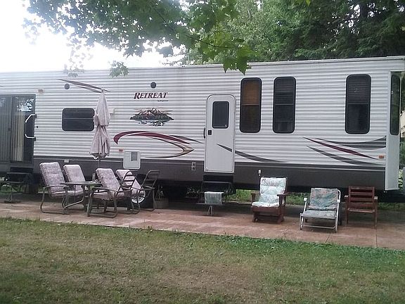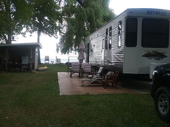 WATER FRONT CAMP Bunkhouse outside kitchen 20x40 stampcrete slab 2012 park model with all options private property with well septic and electricity fireplace next to the lake marina and convenient store next door. Be the envy of all your friends and family. Low taxes compared to a cabin or house on the great lakes.