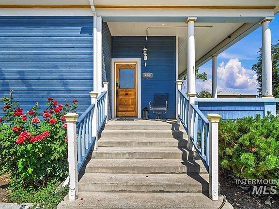 Victorian Style, character and charm on a corner lot near downtown Mountain Home. Imagine sitting on your wrap around porch while overlooking the roses and raspberry bushes and large yard with established trees.Inside the home there are hardwood floors, tall celings, farmhouse sink, granite counter tops, stainless steel appliances and tile flooring. There are 3 bedrooms (one is currently set up as a movie-theatre complete with projector screen but could easily be the homes master bedroom.) If an additional living quarters or income is needed, there is a separate, fully furnished 1 bedroom/1 bathroom apartment. - currently set up as a short term rental. The roof was replaced in 2019. The yard is irrigated with a private well, while the home and apartment are set up on city water. There is alley access and plenty of room for RV parking. Downstairs is a well-kept basement/cellar which has been set up for storage. In the yard, there is a large shed.