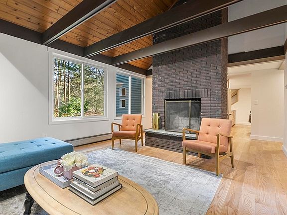 Exciting opportunity in desirable Harvard! Explore this unique, totally renovated, custom designed contemporary home brimming with character and charm. This property boasts a double sided fireplace, vaulted ceilings and stunning exposed wood beams. But that's not all! Spread over approximately 1.5 acres, it features enchanting stonework and mature trees, providing the ideal backdrop for your suburban oasis. A detached garage with a loft, and tons of storage, can be used an office or an additional bonus room.