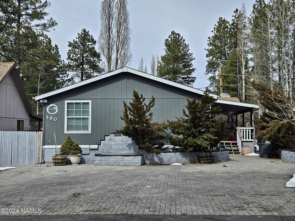 Nestled in serene Munds Park, this manufactured home offers 3 beds, 3 baths, and a split floor plan. Featuring a cozy living area, well-appointed kitchen, and study, it's perfect for relaxation and productivity. Outside, a large shed and greenhouse await. Ideal for enjoying the beauty of Northern Arizona, with recreational opportunities nearby. Don't miss this opportunity! Great paver drive way and AC.