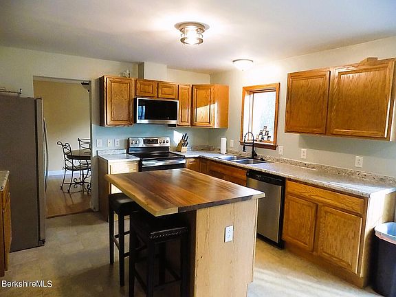 Four bedroom two and a half bath home with rocking chair front porch and back deck overlooking a wooded area along with some distant mountain views. Kitchen is large enough to have a table with island along with the slider out to the rear deck. The living room has a corner gas fired fireplace with mantel. The rest of the first floor has a formal dining room a formal sitting room the half bath along with a laundry closet. The primary bedroom has a large walk in closet full bath with shower stall and jet tub. There are three other bedrooms and a full bath with tub shower combination on the second floor also. Basement has been partially finished which could be completed for additional living space. There is a hatchway that was designed to go into a possible attached garage if one chooses to build one