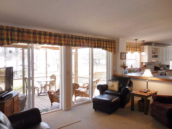 Waterfront lake home at end of cul-de-sac road on a flat lot, wide cove to main lake views & double boathouse. Sounds like the right combination for a place at Lake Gaston! This 3BR/2BA doublewide home has living room with 2 sets of sliders to the lakeside screened porch. Kitchen and dining area all with views of the lake. Laundry room. Portion of lakeside deck uncovered and provides additional space for entertaining. 2 outbuildings and gravel driveway too. Community boat ramp for easy lake access. This approx .77 acre parcel is situated at the mouth of Hubquarter Creek where it joins the main lake on Lake Gaston's SW Quad.