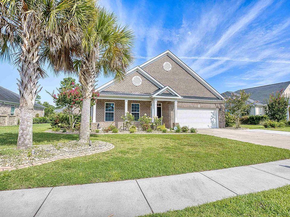 Welcome to this stunning brick home in gated Covington Lake East. This 5 BR 3.5 BA home offers an open floor plan with large living room, dining room and kitchen. This home features crown molding and tray ceilings. The kitchen is equipped with granite countertops, stainless steel appliances, pull outs in the cabinetry, a walk in pantry and natural gas stove. The living room has high vaulted ceilings and a gas fireplace. There are 4 BR including the master on the first floor, a large bonus/flex/bedroom with full bath upstairs.The finished garage is heated/cooled with a mini split along with an epoxied floor. This home also features a gas tankless hot water heater and whole house water filtration system. This community is convenient to all that Myrtle Beach has to offer. This home comes with a transferrable 2-10 Home Warranty covering appliances and mechanicals.