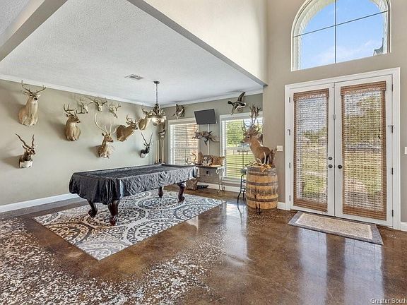 Welcome to your dream oasis in the South Beauregard School District! This magnificent home sits on nearly 3 and a half acres on a dead end road, offering the perfect blend of luxurious living and outdoor serenity. With 6 bedrooms (or 5 bedrooms & an office) and 4 bathrooms inside, this property is perfect for families of all sizes. The exterior highlight has to be the detached outdoor kitchen/entertainment space - a true entertainer's delight! Adjacent to the inviting in-ground pool, this space is wired for surround sound, boasts a wall mounted TV, gas grill, electric range/oven, wet bar, mini fridge, and a convenient full bathroom. The ideal setting for LSU parties and creating cherished memories with family and friends. Step inside, and you'll be enamored by the attention to detail and the thoughtful design of this home. The master bathroom features a separate walk-in shower and tub, offering a spa-like experience. The indoor entertainment space is currently home to a pool table and trophy mounts, making it a versatile area for your personal interests and hobbies. Venture upstairs, and you'll discover four additional bedrooms (or three beds and a play room for your munchkins), each promising comfort and privacy for every member of your household. The living space below showcases impressively high ceilings and a balcony to create a grand ambiance that is both inviting and awe-inspiring. For added convenience, the laundry room is equipped with hookups for two full-size washers and two dryers, ensuring that laundry day becomes a breeze. The attached 2-car garage provides ample space for your vehicles and storage needs. Beyond the main residence and the resort-like pool area, stands a spacious 30x40 shop with a 10 foot lean-to on each side, the perfect workspace for your DIY projects. Hanging from one side of the workshop is a porch swing overlooking the half-acre pond and small, charming fishing pier, where you can relax and enjoy the tranquility. Don't miss this rare opportunity to own a piece of paradise just outside of town. Embrace the peacefulness of country living while still being close to modern amenities and schools. Schedule a tour today and make this your new home!