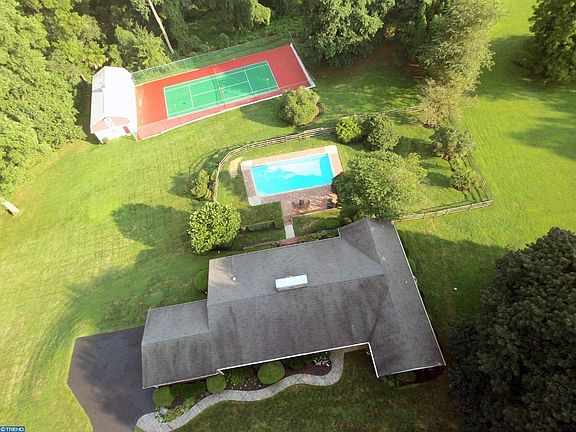 This 4 BR 3 full bath home is located in Thornbury Township and features an inground pool, tennis court and lots of privacy. This is a well maintained house featuring an open foyer with flagstones, a step down to the open formal living room/ dining room with centrally located wood burning fireplace. A bright kitchen is open to a light filled family room, including a fireplace. The sliding door leads onto a patio then to a very private backyard with pool and tennis court. The largest bedroom has his and her closets and a private bathroom with whirlpool tub and a corner shower. Three more generous size bedrooms with closet space, a full bathroom and a extra wide hallway complete the main level. Hardwood Flooring in the bedrooms and halls. The downstairs features huge finished walk-out basement, with a bedroom(or office), a full bath, two utility rooms and a magnificent wood burning stone fireplace. Minutes to West Chester to major routes & stores but you'd never know from the idyllic setting. All furniture seen in pictures is being removed. This house comes unfurnished. Owner pays for lawn care. Tenant pays for Water, Electric, Heat and Septic