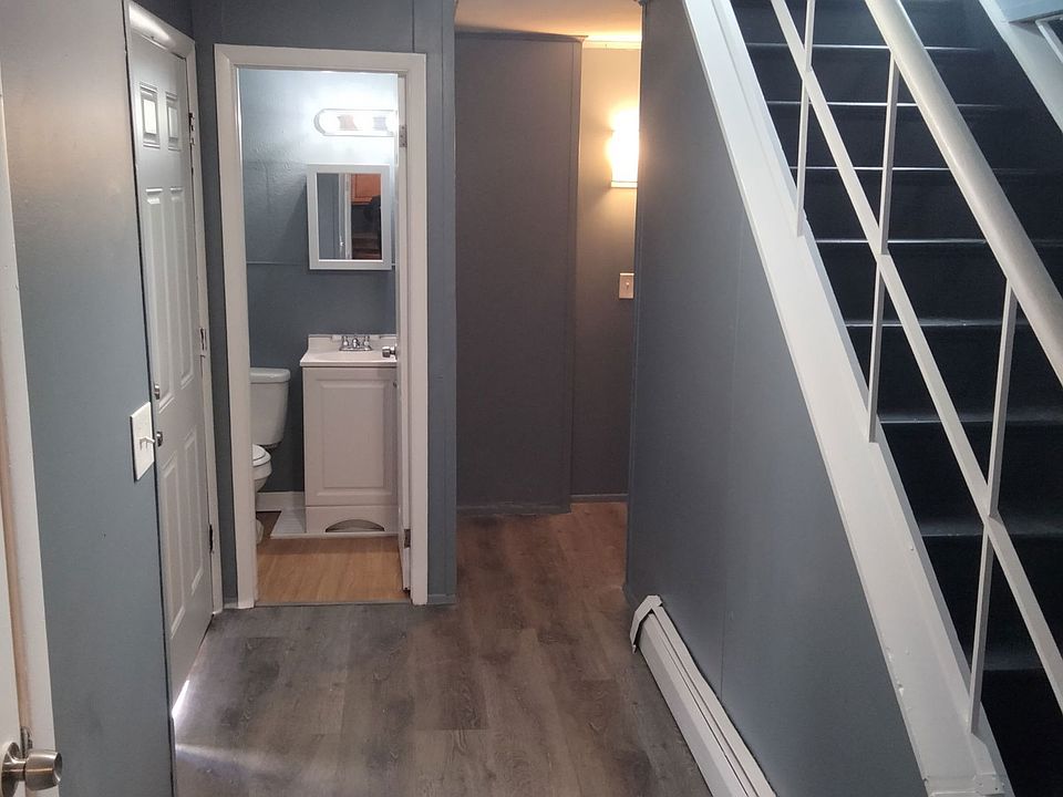 End unit on Earle St. Has two floors with three BR upstairs and a full bath and downstairs is the large living room, kitchen and half bath. Parking for one vehicle in the parking lot on Barbour St. Gas heat and hot water, electric stove. Heat: Gas baseboard Hot Water: Gas Stove: Electric Tenant needs gas and electric account Includes Stove, Fridge