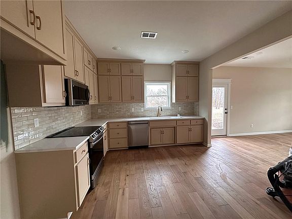New ranch home build nearly finished! Two bedrooms and 2 full baths. Two car garage nestled on a level lot. Spacious great room and kitchen. You can walk to the new Holt Winery, Walnut Creek! Photos will be updated. Kearney Schools, close to PP Highway and I-35. Buyers agent to confirm sqft and taxes. As of 01/04/2024 flooring is being installed then paint and fixtures. Completion is estimated February 2024.