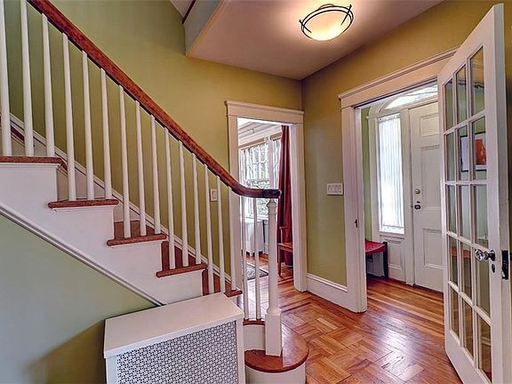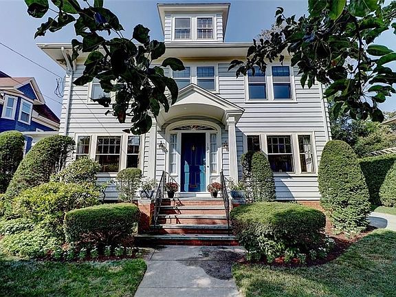 This delightful home has beautifully proportioned rooms, charming details and has been thoughtfully renovated. The welcoming front portico leads to a lovely foyer flanked by a front to back living room with fireplace, sun room and French Doors that step to a terrific deck. The dining room with pretty built in's steps to an eat-in kitchen. A powder room off the back hall completes the main living level. The second floor has four generous bedrooms and a renovated bath. There is an additional bedroom, home office and full bath the third floor. This home has been tastefully updated with ductless air conditioning, two car garage and a delightful city garden. A short stroll to the Elmgrove Shops and Wayland Square make for a perfect East Side residence.