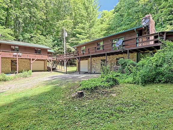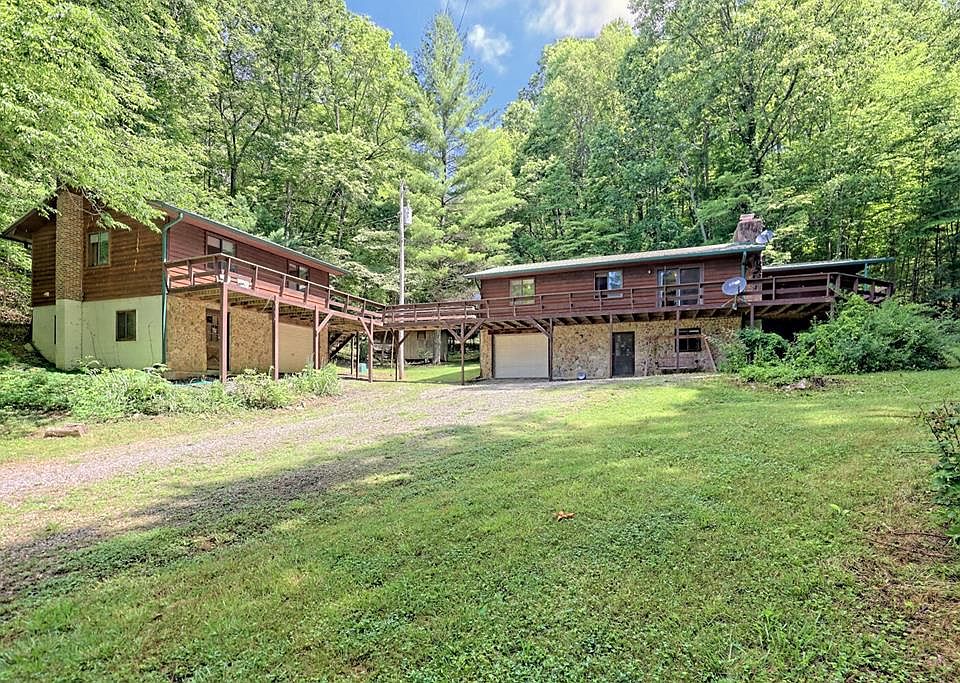 Bring your horses to graze in the pastures! Privately located in desirable Peachtree community, this home has it ALL! Home has 2 bedrooms and 1.5 bathrooms on the main level overlooking beautiful pastor and mountain views. The basement has a second living room with fireplace, full bath, 1 car garage, and laundry room. The entire house is wrapped with an oversized deck that leads to an additional detached garage with a workshop, topped off with a 1 bedroom, 1 bath apartment. All this on over 13 acres of private land with blueberry bushes, blackberry bushes, pear tree, garden area with fertile organic soil, and wildlife galore. Property has hiking trails. Property has open firewood structures, storage buildng, barn and stables. Chicken coop This property has something for everyone....and their friends and family